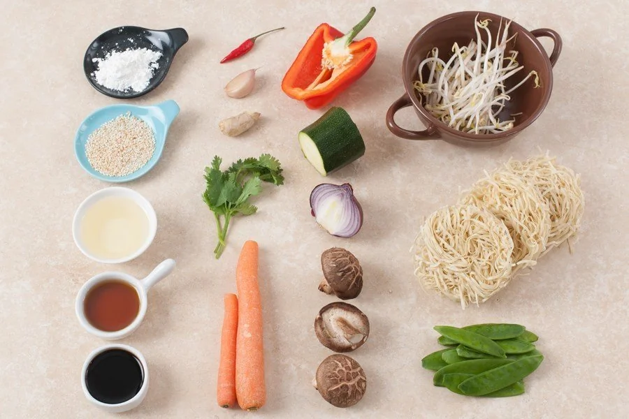 Ингредиенты для приготовления Овощи стир-фрай на яичной лапше: