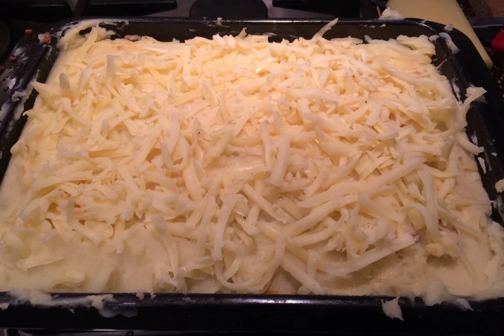 ШАГ 8 Посыпьте сверху крупно натертым чеддером и запекайте 20 минут.