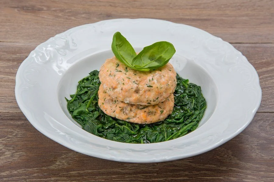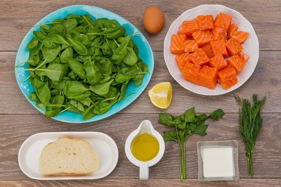Ингредиенты для приготовления Паровые рыбные котлеты со шпинатом: