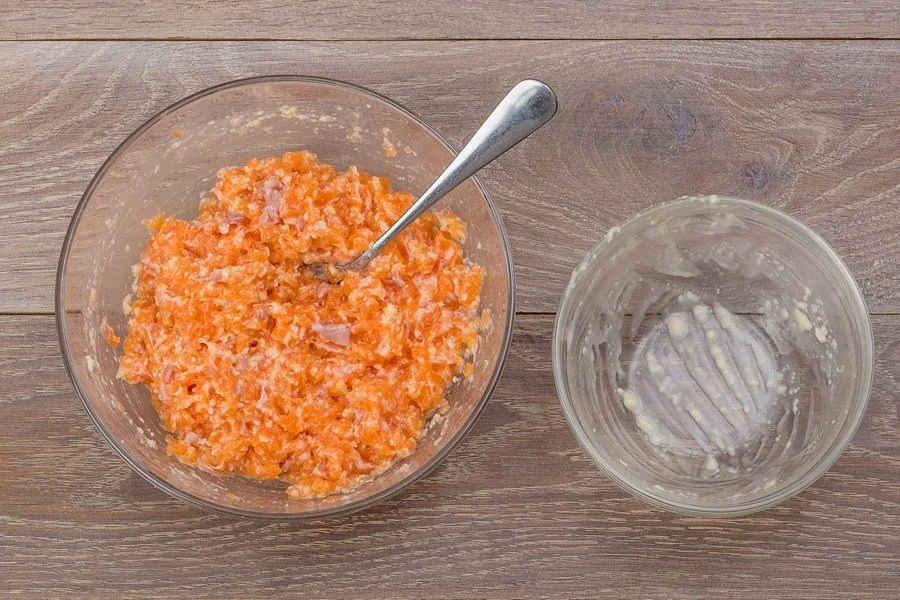 ШАГ 2 Соедините хлеб с рыбным фаршем и вымесите до однородного состояния.