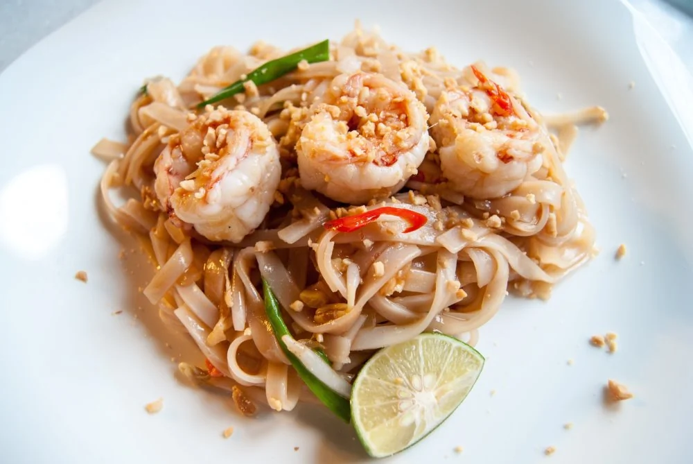 ШАГ 8 При подаче на стол посыпать лапшу средне измельченным в ступке арахисом, украсить четвертью лайма. Сразу же есть!