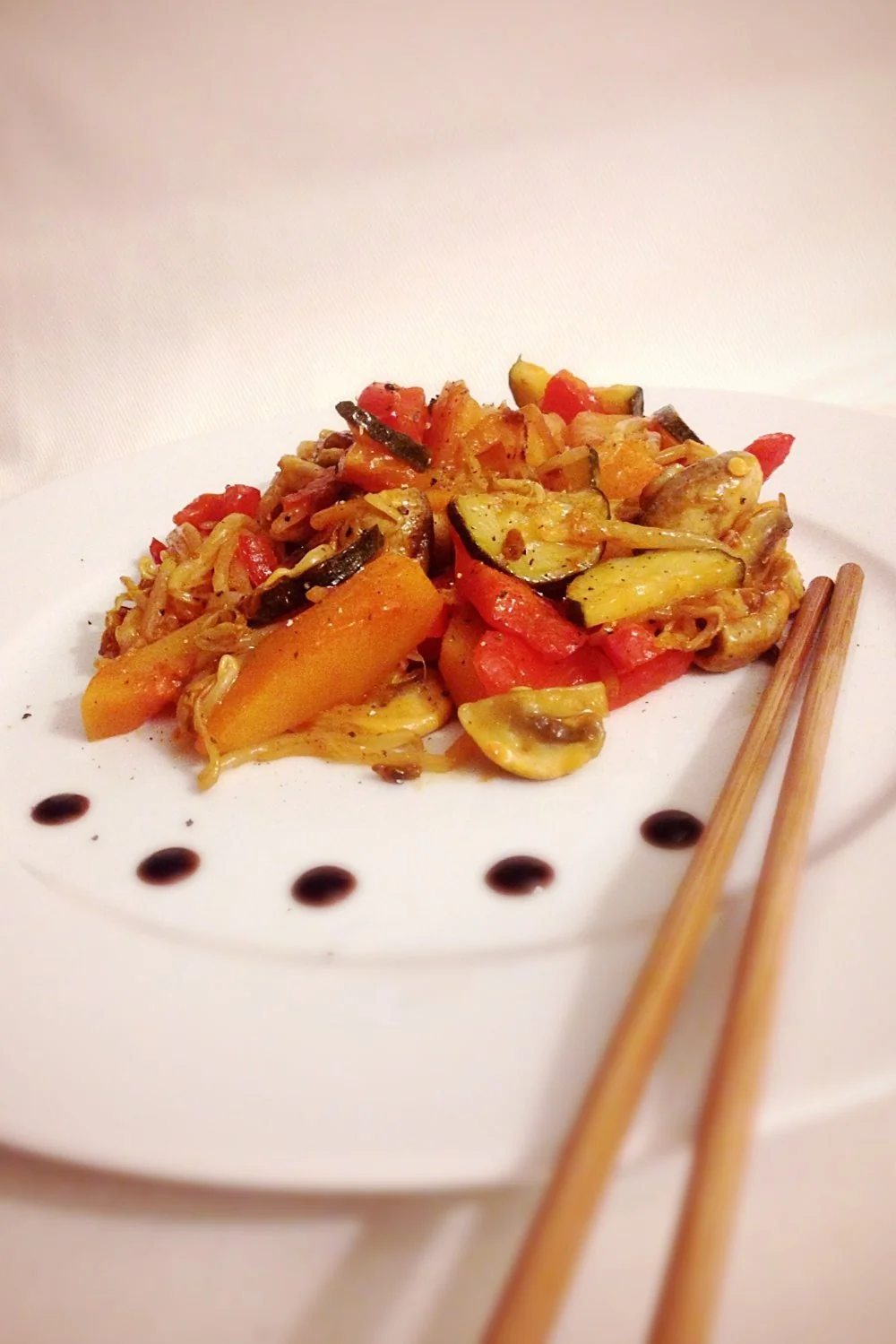 Овощи с грибами в кисло-сладком соусе