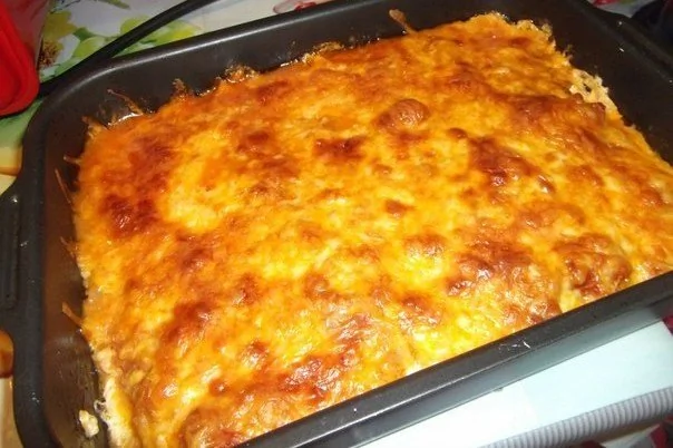 ШАГ 10 Поставить туда картофель запекаться. Запекать, пока блюдо не примет золотистый оттенок.
