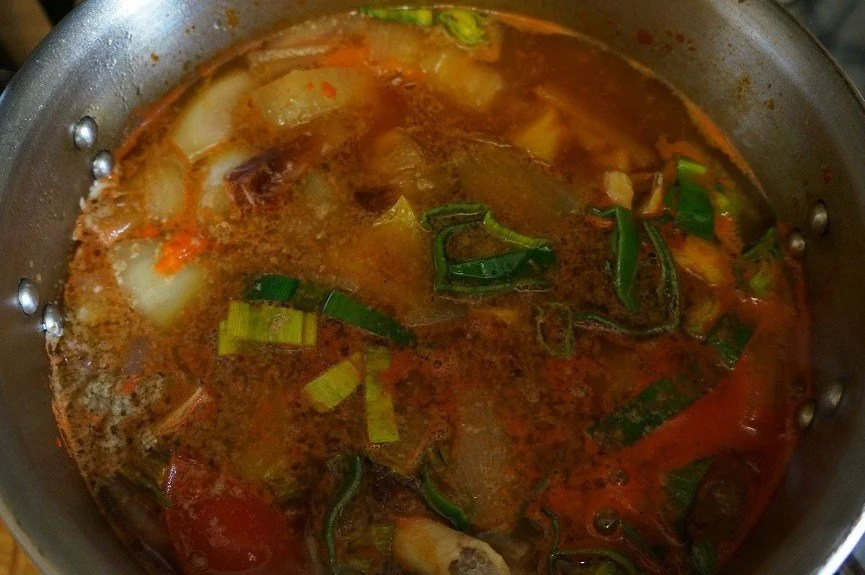 ШАГ 2 Голяшки переложить в глубокую кастрюлю, залить двумя литрами воды.