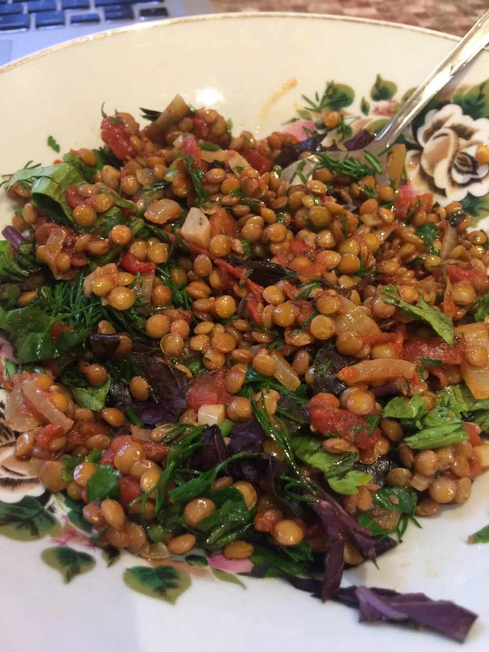 Чечевица с томатами и зеленью