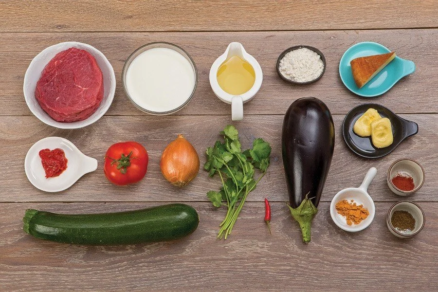 Ингредиенты для приготовления Мусака с говядиной и сулугуни: