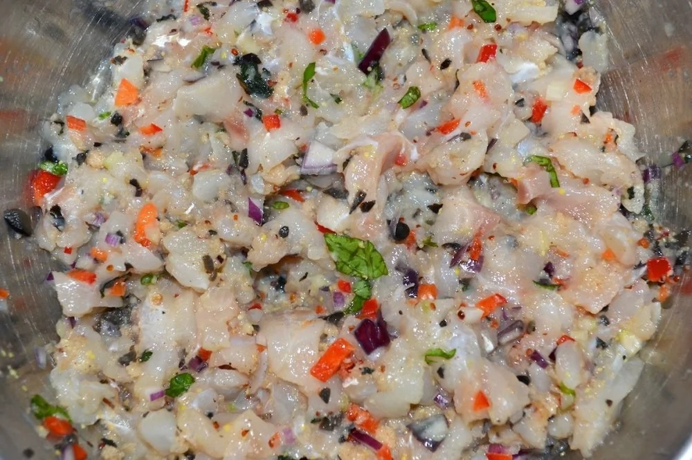 ШАГ 4 Филе трески порубить мелко (кусочки не должны превышать размер (1х1 см).