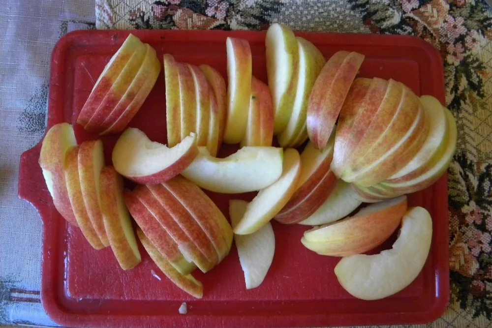 ШАГ 3 Яблоки вымойте, разделите на четвертинки, удалите сердцевину. Нарежьте яблоки дольками.