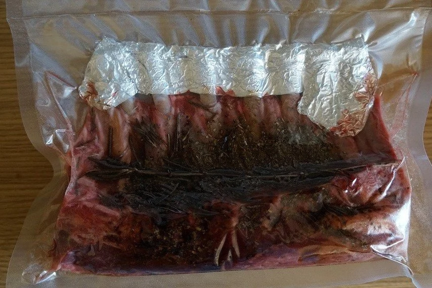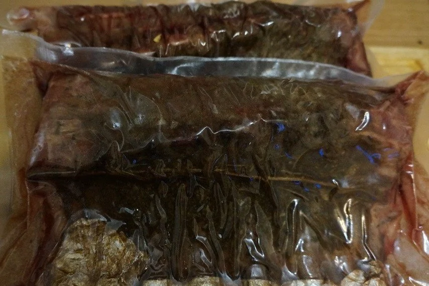 ШАГ 1 Упаковать все компоненты в вакуумную упаковку и готовить в sous vide при температуре 57 градусов 3 часа.