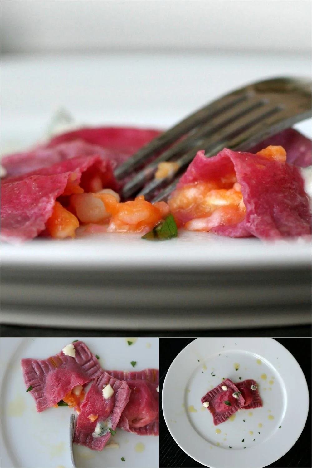 ШАГ 6 Отваривайте готовые равиоли с тыквой и свеклой, как и любую другую свежую пасту: в большом количестве крепко посоленной воды. Хватает трех минут, чтобы все было готово.