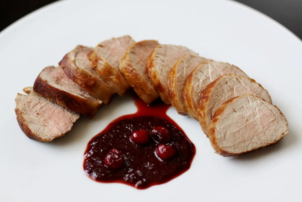 Свинина с соусом из сушеной вишни, меда и гвоздики