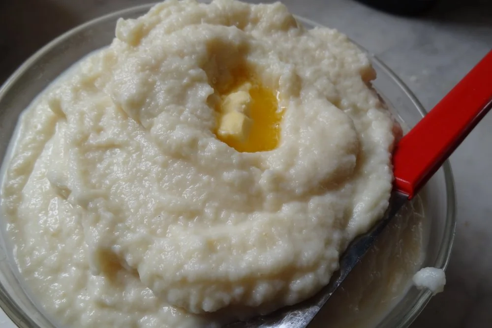 ШАГ 4 В горячее пюре добавить сливочное масло — количество зависит от вашей каллорийной озабоченности. Посолить и поперчить.