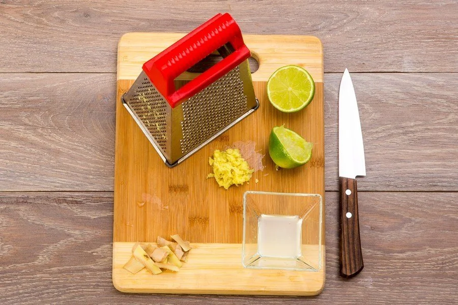 ШАГ 1 Очистите имбирь и натрите на мелкой терке; выжмите сок половины лайма.