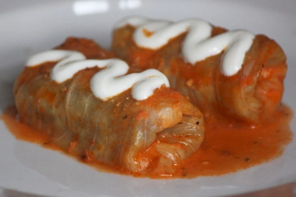 ШАГ 8 Залить голубцы приготовленным соусом и тушить на медленном огне до готовности капусты. Подавать со сметаной.