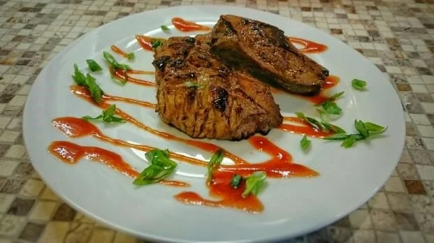 ШАГ 5 Даем стейкам полежать 1 минуту для равномерного распределения сока внутри волокон мяса и нарезаем.