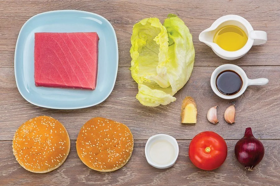 Ингредиенты для приготовления Бургер с тунцом, луком и помидором: