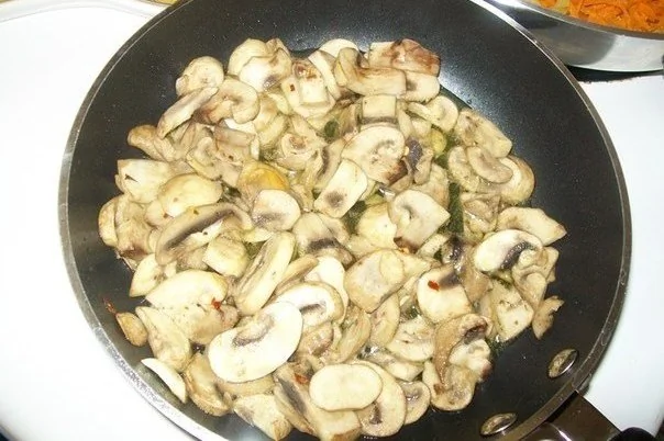 ШАГ 3 Грибы промыть, обсушить и потушить на растительном масле.