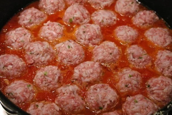 ШАГ 6 Если жидкость быстро выкипит, добавьте немного воды или томатного сока. Когда тефтельки приготовятся, рисинки начнут вылезать из них как иголки. Подавать с томатным соусом, в котором они тушились.