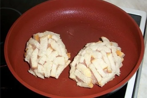 ШАГ 4 Яйцо слегка взбиваем с молоком. Котлеты — в яйцо, затем в сухари.
