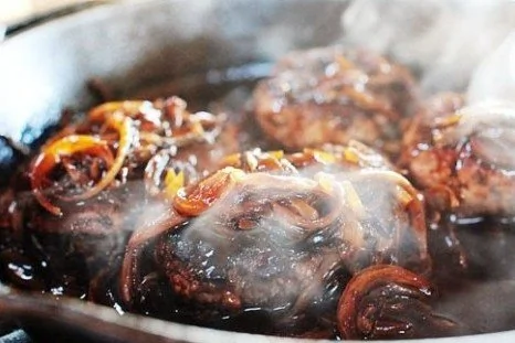 Говяжий фарш Хлебные крошки Соль Перец черный молотый Сухая горчица Говяжий бульонный кубик Кетчуп Лук Кукурузный крахмал Говяжий бульон Оливковое масло Сливочное масло Основные блюда Британская кухня Стейки