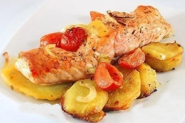 Ингредиенты для приготовления Лосось с картофелем, запеченный в духовке: