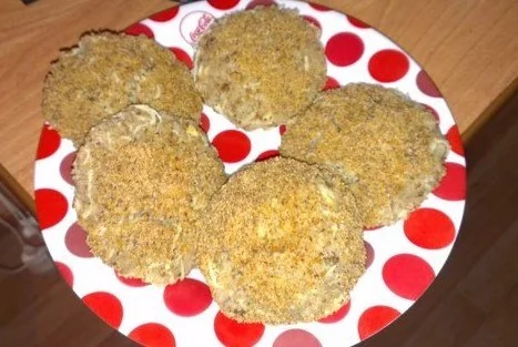ШАГ 4 Сформировать котлетки. Обвалять в сухарях. Обжарить в масле или запечь в микроволновой печи с небольшим добавлением воды.