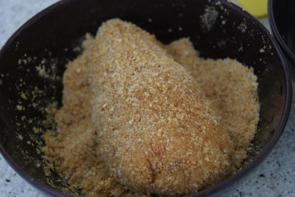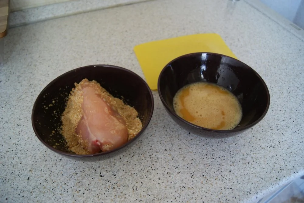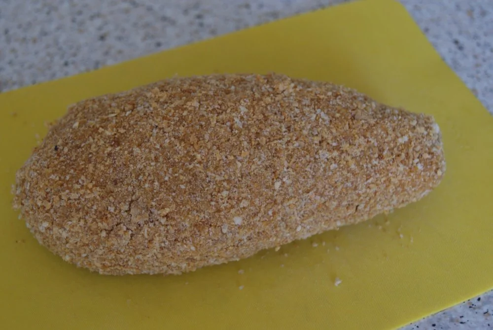 ШАГ 9 Панированную котлету кладем в морозилку для заморозки.
