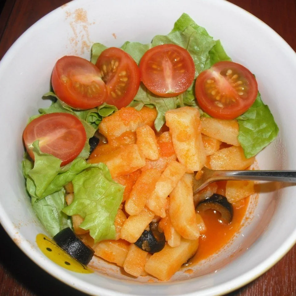 Картофель в томатной пасте с оливками