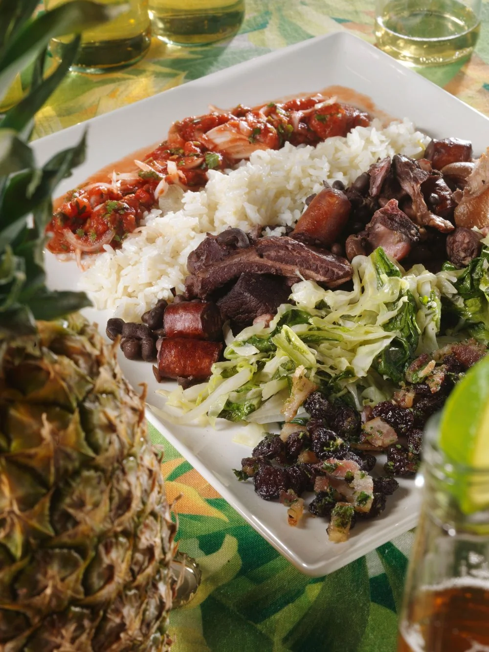 ШАГ 1 Фейжоада — блюдо глубоко народное, не очень казистое внешне, но очень темпераментное. Оно состоит из пяти вполне самостоятельных сюжетов: черных бобов, тушенных со свининой, чесночного жасминового риса, томатного винегрета, зеленого гарнира с молодой капустой и фарофы. Мы разделили все этапы приготовления на пять отдельных рецептов, по которым удобнее готовить. Чтобы они были всегда под рукой, сохраните все пять в вашу книгу рецептов.