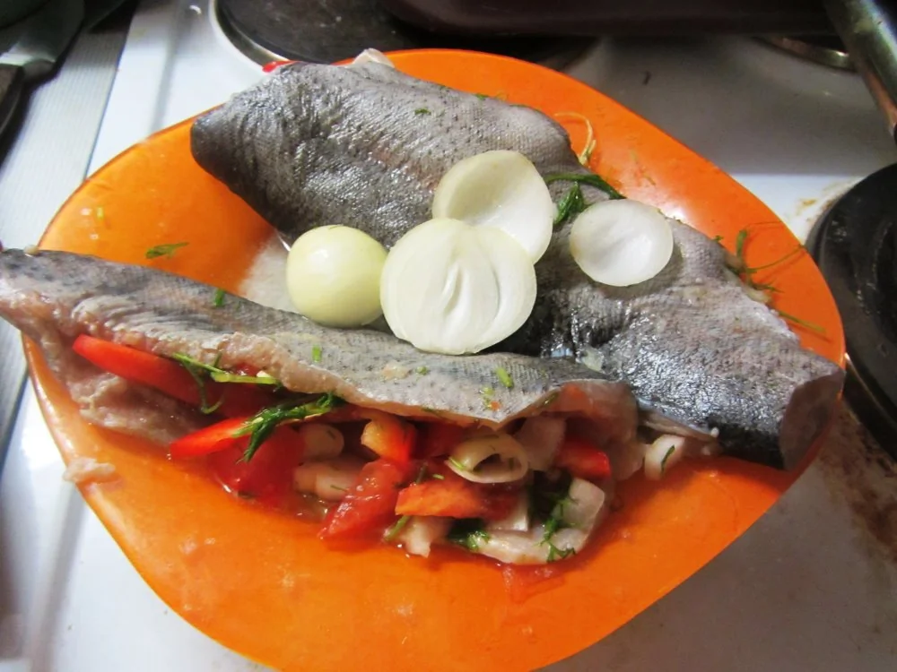 ШАГ 2 Выложить рыбу на смазанную маслом решетку гриля (я делала в аэрогриле).