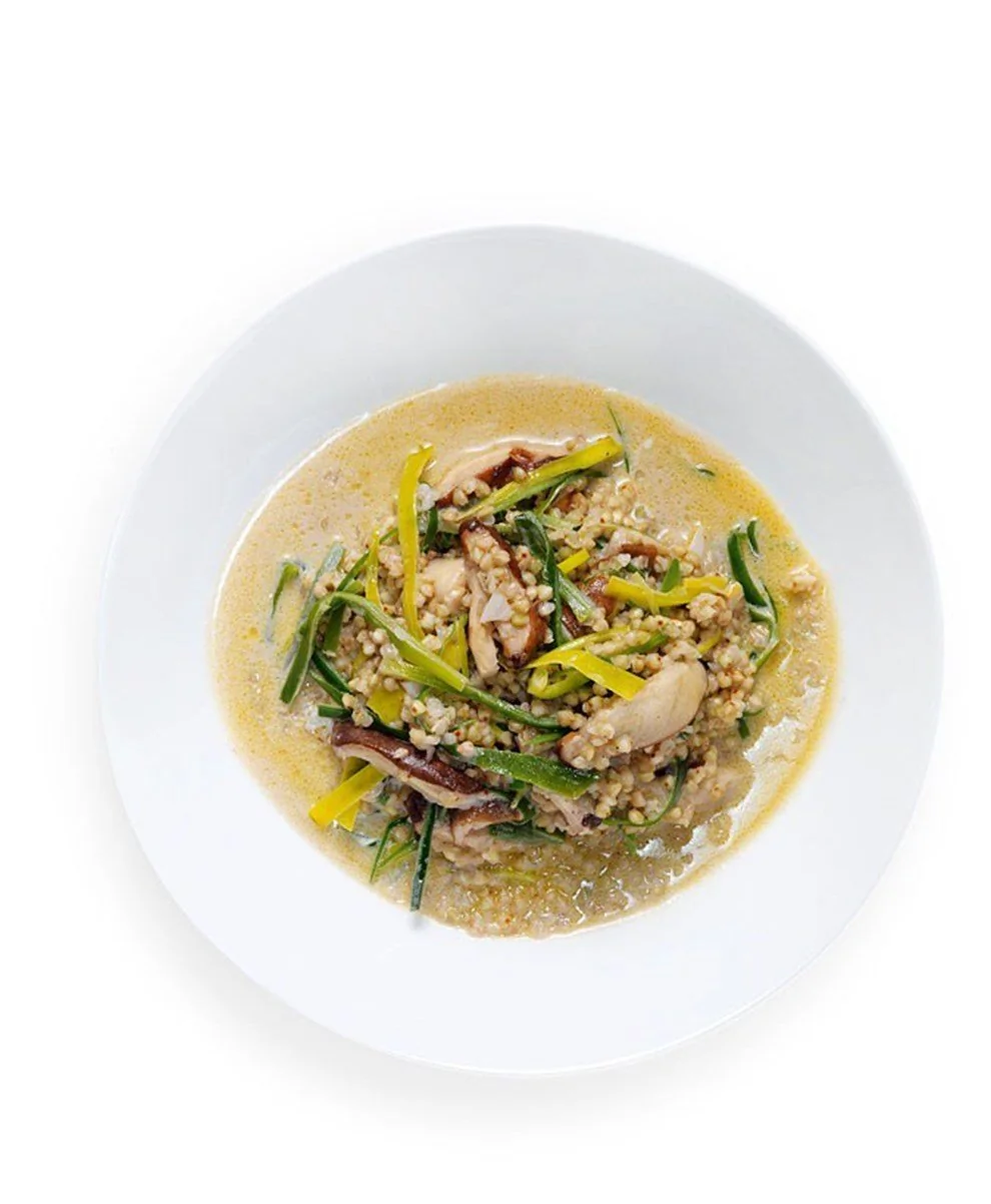 Ингредиенты для приготовления Зеленая гречка с грибами и пореем: