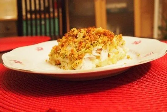 ШАГ 9 Если без картофеля, то форму смазать маслом, разложить рыбу, покрыть фисташками и запечь.