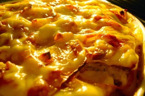 ШАГ 4 В предварительно разогретую печь поставить противень и запекать блюдо в течении 20 минут при температуре 180 градусов. После приготовления засыпать рыбу тертым сыром и оставить в печи еще на 5 минут.