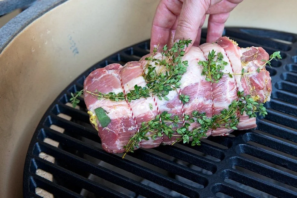 ШАГ 5 Нагрейте гриль Big Green Egg с железной решеткой до 150 градусов. Поместите рулет на решетку и готовьте около 60 минут, пока мясо не будет готово, а температура внутри рулета не достигнет 63 градусов. Переворачивайте мясо каждые 10 минут.