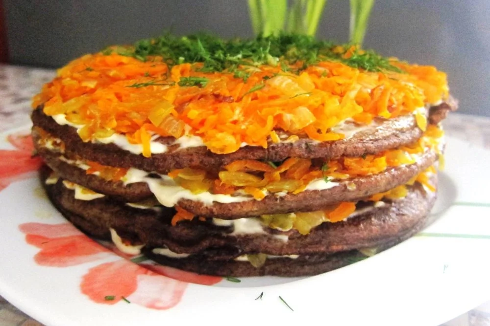 Печеночный торт с морковью