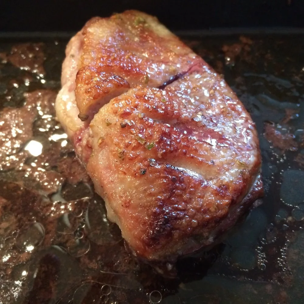 ШАГ 12 Затем переложить в огнеупорную форму и запекайте в зависимости от размера грудки и желаемой степени прожарки (см примечание). Через 5 минут смажьте грудки цветочным медом с помощью кулинарной кисти.