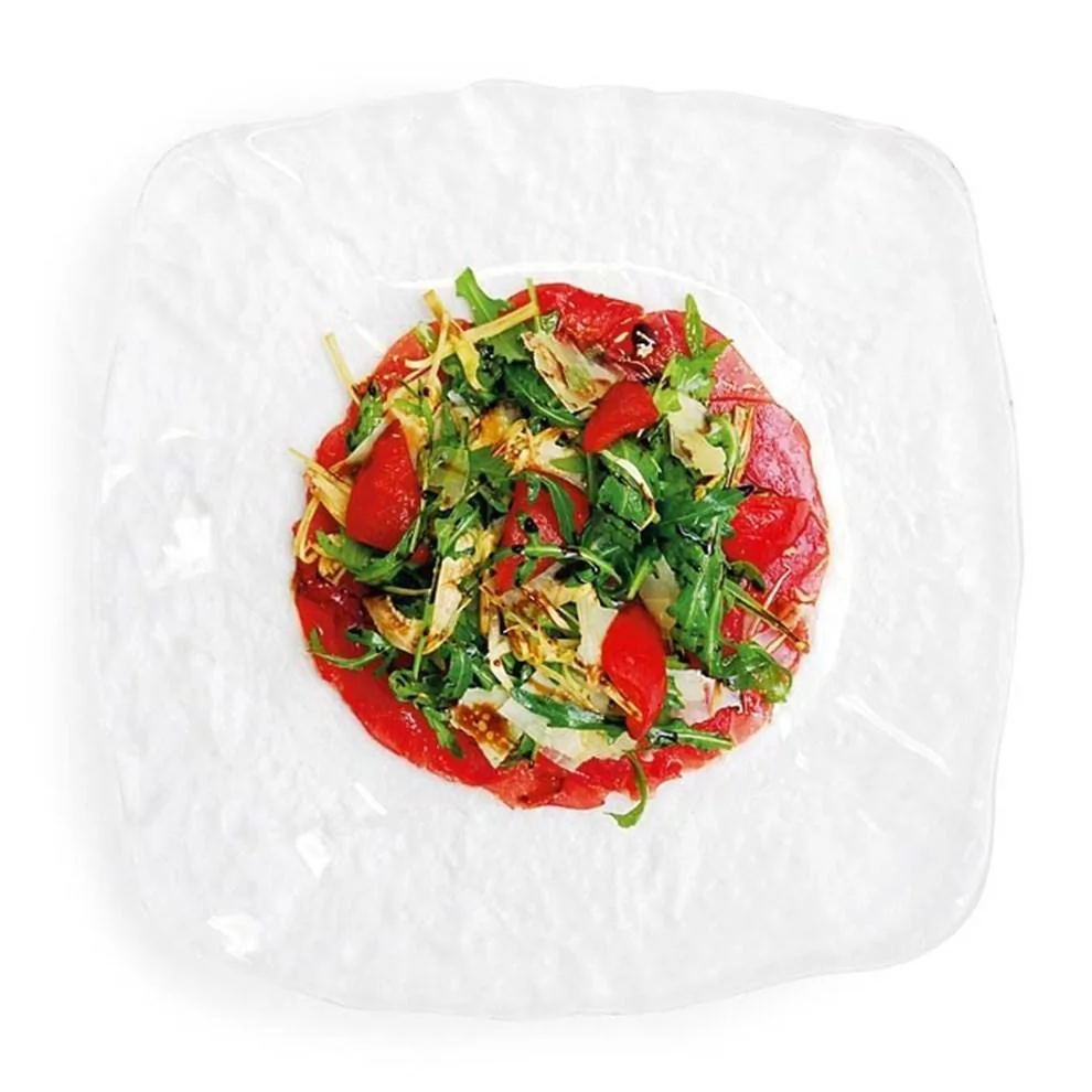 ШАГ 7 Заправленные продукты выложить на карпаччо, украсить помидорами конфи, полить выдержанным бальзамиком и посыпать черным перцем из мельницы.
