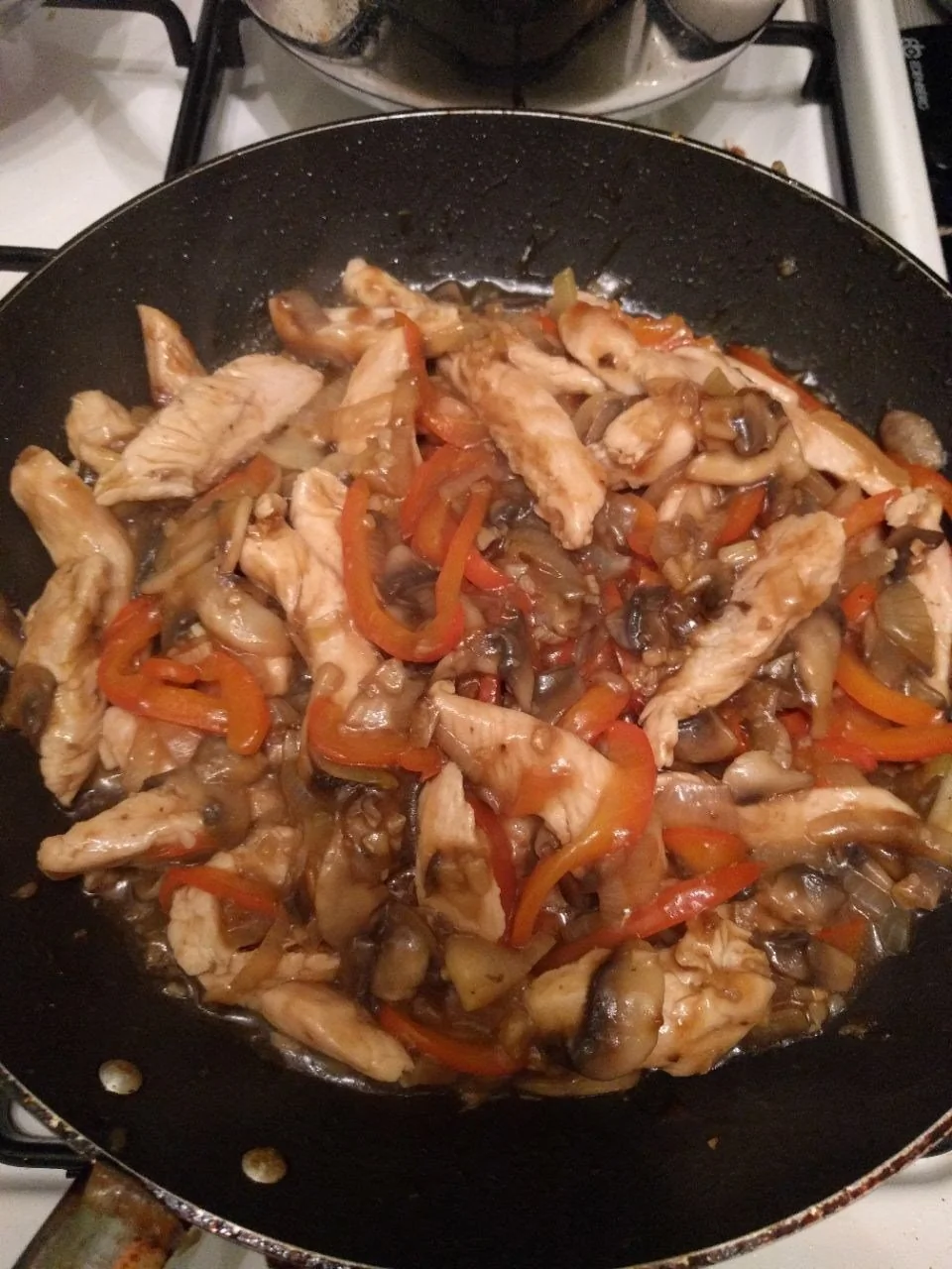 Ингредиенты для приготовления Стир фрай из курицы с грибами и сладким перцем: