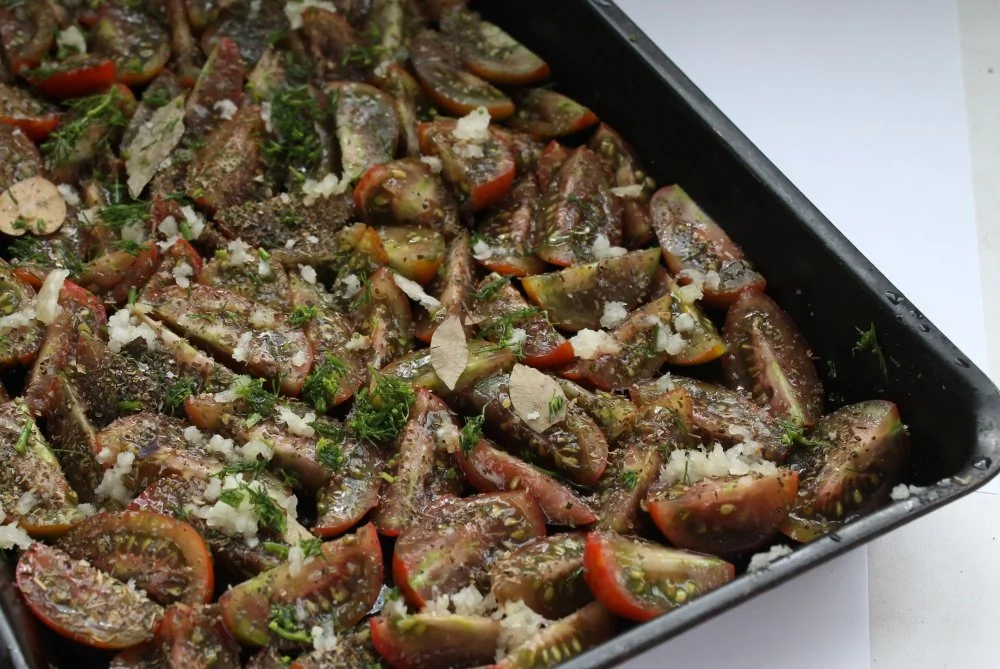 ШАГ 2 Духовку нагреть до самой максимальной температуры. Когда поставишь туда помидоры у уменьшить температуру до 100–140 градусов. Готовить 3–5 часов.