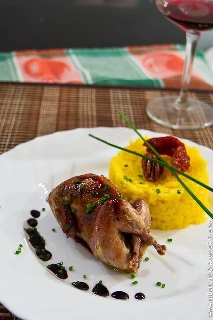 ШАГ 5 Подавайте перепелов горячими, полив их соусом или маслом, которое вытопилось в форму и смешалось с соками — только не забудьте его сперва процедить.