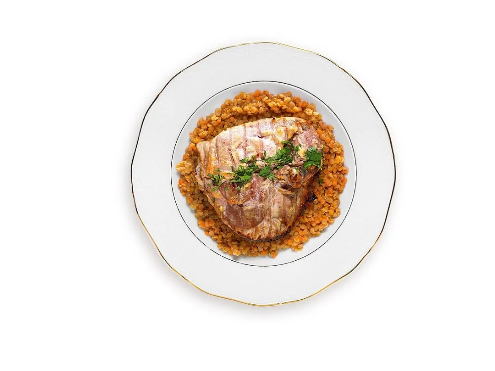Бедро индейки с асафетидой и красной чечевицей