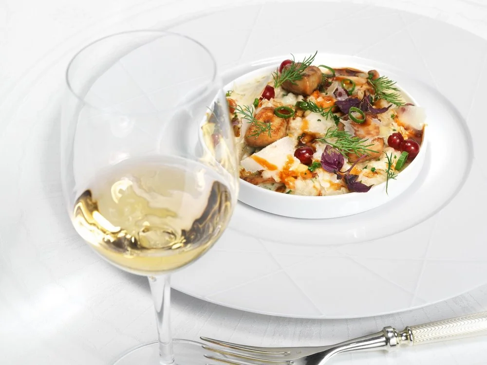 ШАГ 4 Ризотто выложить на тарелку, украсить фуа-гра, смородиной и укропом.
