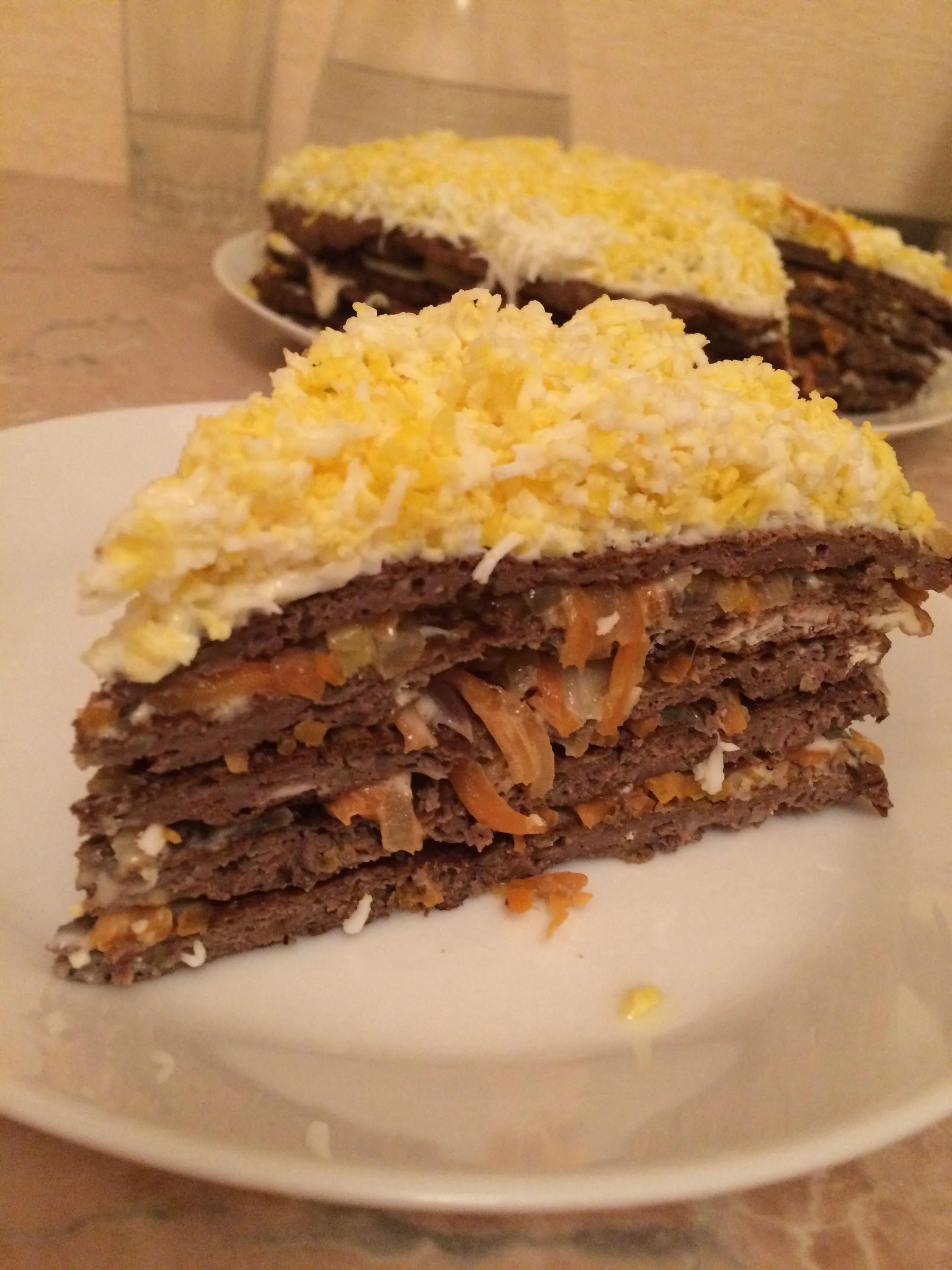 Ингредиенты для приготовления Печеночный торт с чесноком: