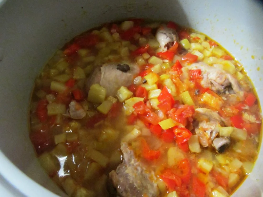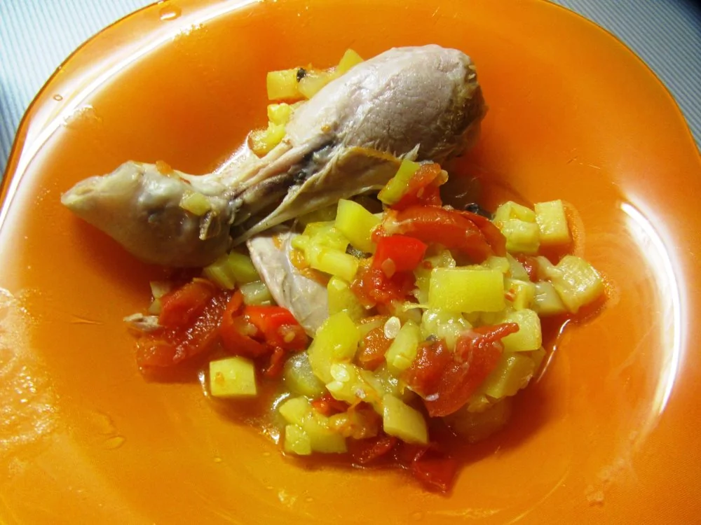 Курица, тушеная с овощами