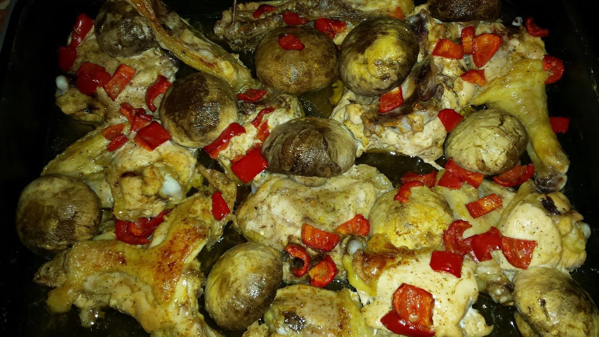 ШАГ 4 Затем достаньте посуду из духовки, поместите туда курицу и залейте все это лимонно-оливковой смесью. Запекайте курицу в течение примерно получаса. Затем добавьте в ту же посуду оливки и подержите в духовке еще 10 минут до готовности.