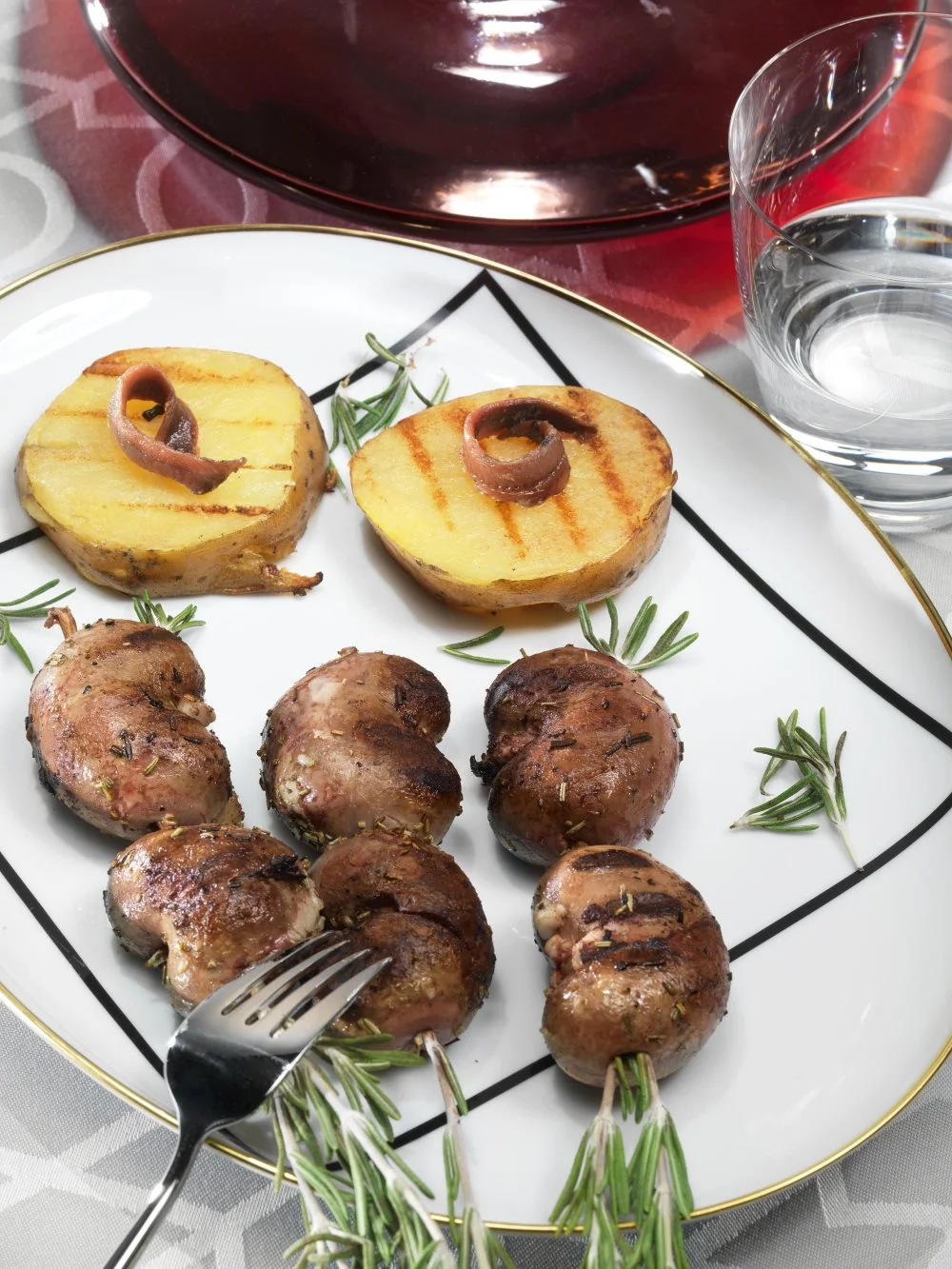 ШАГ 3 Разогреть гриль, почки посолить и поперчить. Обжарить на гриле по три минуты с одной стороны и по две с другой, выложить на блюдо. Сразу подавать, полив соусом из оливкового масла, смешанного с розмарином и анчоусами.
