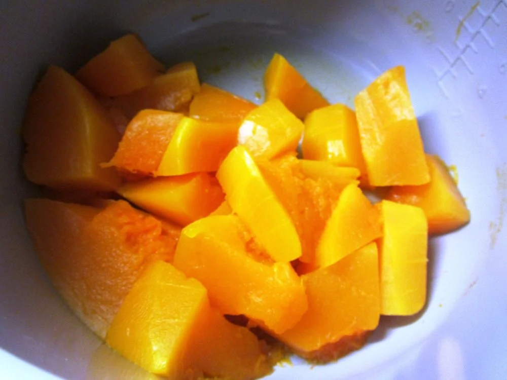 ШАГ 3 Готовую тыкву измельчаем с помощью блендера (можно использовать толкушку или вилку). Взбиваем до получения однородного гладкого пюре.