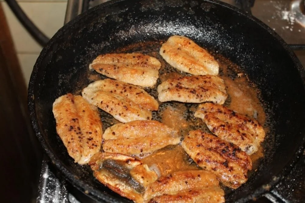 ШАГ 4 Даем рыбке постоять на сковородке 3–5 минут.