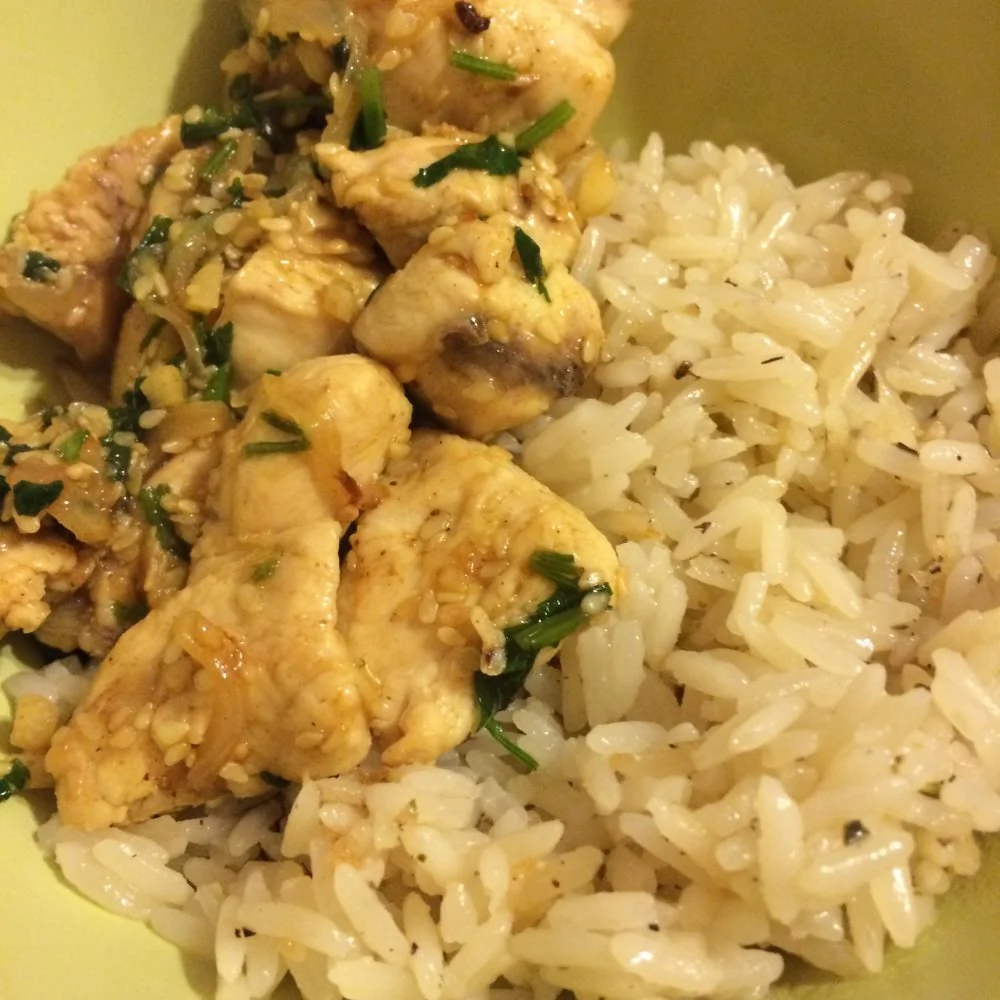 ШАГ 3 Добавить кунжутные семечки, рыбный соус и кинзу. Подавать с отварным рисом.