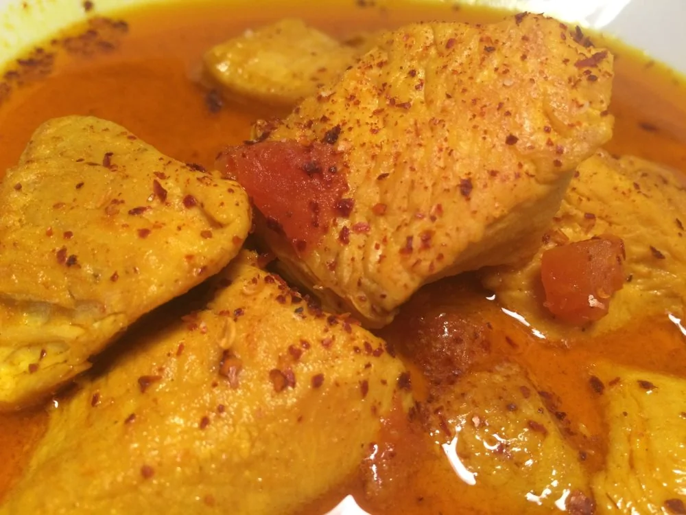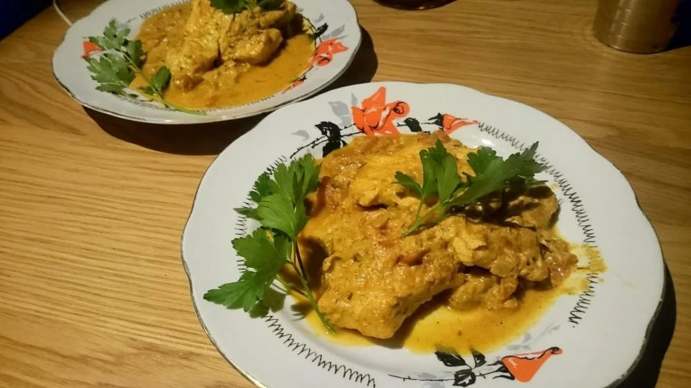 ШАГ 6 В кастрюлю к луку и помидорам, добавьте йогурт и хорошо подогрейте, затем положите обжаренные кусочки индейки и оставьте на маленьком огне в течение 45–60 минут.